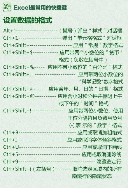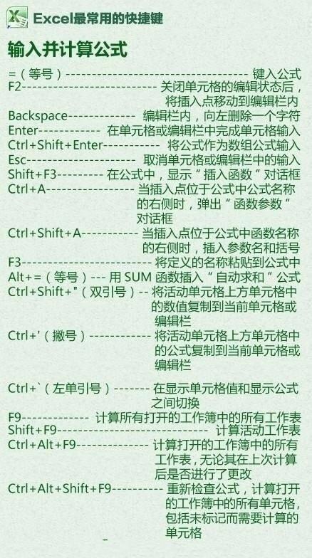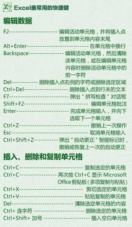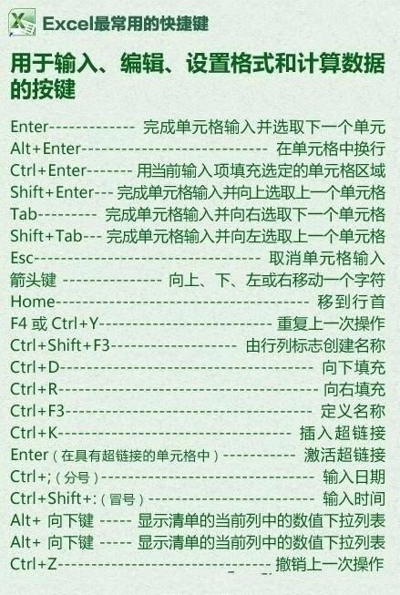 3、Excel用于输入、编辑、设置格式和计算数据的按键快捷键