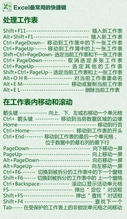2、Excel处理工作表+在工作表内移动和滚动快捷键
