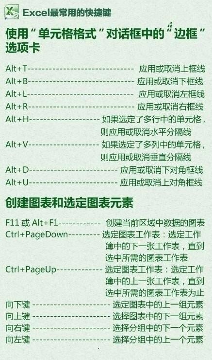 5、Excel使用“单元格格式”对话框中的“边框”选项卡;创建图表和选定图标元素快捷键。