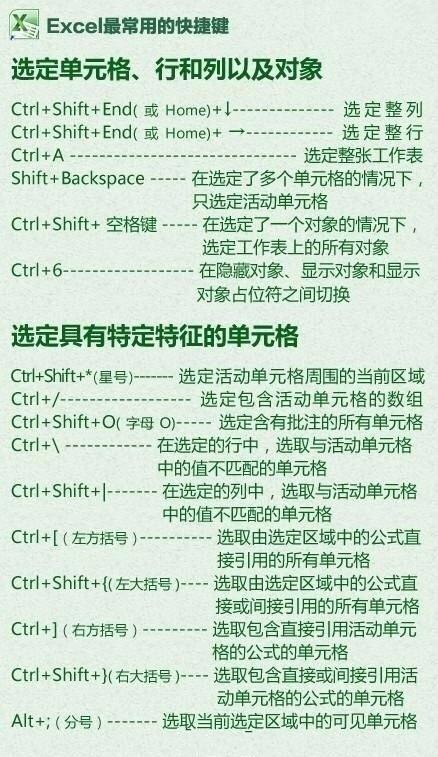 7、Excel选定单元格、行和列以及对象;选定具有特定特征的单元格快捷键。