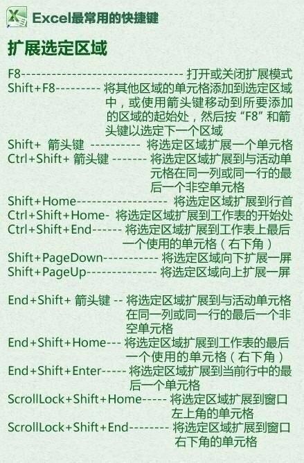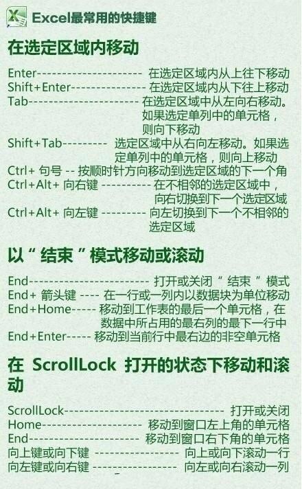 8、在选定区域内移动;以“结束”模式移动或滚动;在scrolllock打开的状态下移动和滚动。
