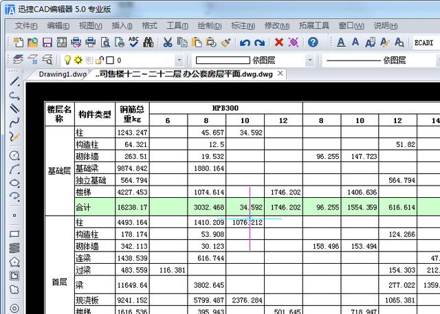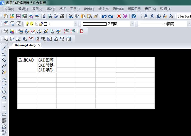 3.在弹出的“工作表 在Dawing.dwg”的表格中,编辑表格内容,即可在CAD中新建一个表格。