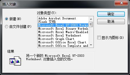 2.在弹出的插入对象窗口中,选择新建,Microsoft Excel,点击确定。